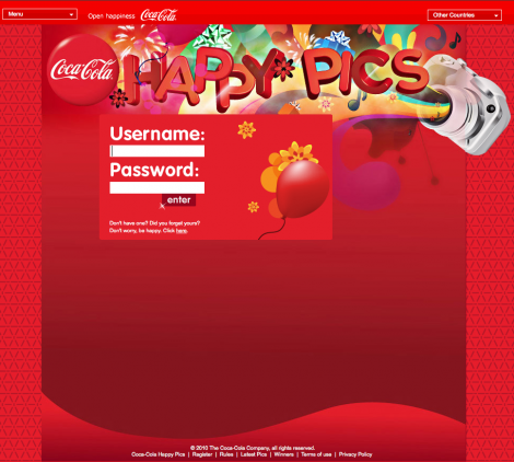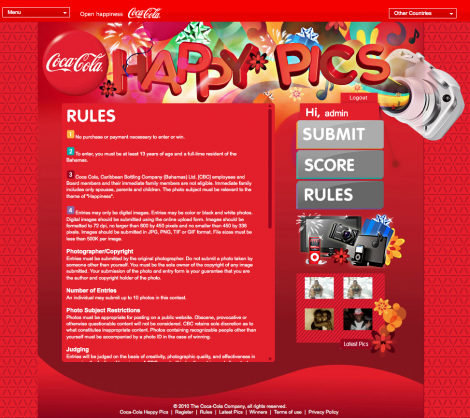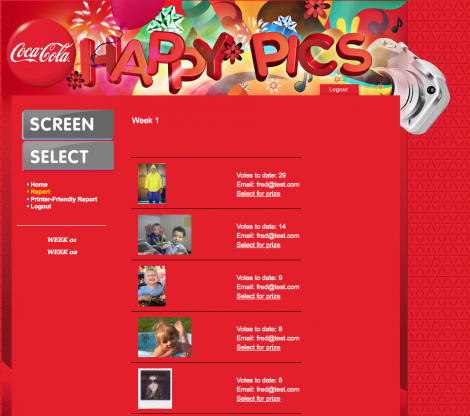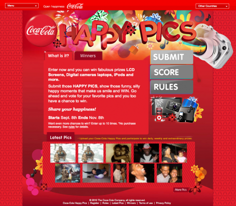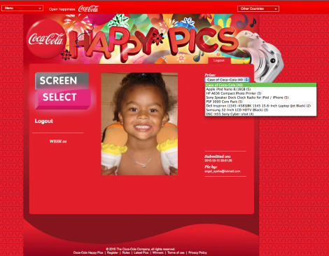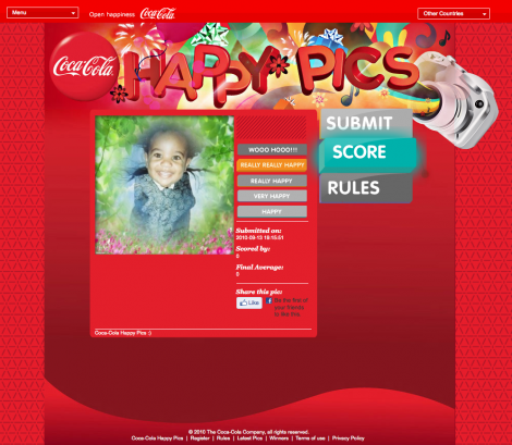 Major Robot teamed up with design firm MDFC Estudio to bring Coca-Cola Happy Pics, a cheerful contest site, to life. Part of a Coke healthy living initiative in the Dominican Republic, Happy Pics challenged users to upload the happiest selfie possible and then vote on others' submissions: Are you "Really Happy?" "Really, Really Happy?" Or, even "Wooo Hooo?"