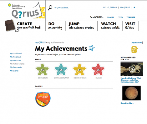 Major Robot developed this module based on a code written for the National Museum of Natural History's Q?rius site and exhibit, in collaboration with C&G Partners, Potion Design, and the good folks at Credly.